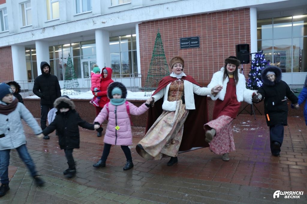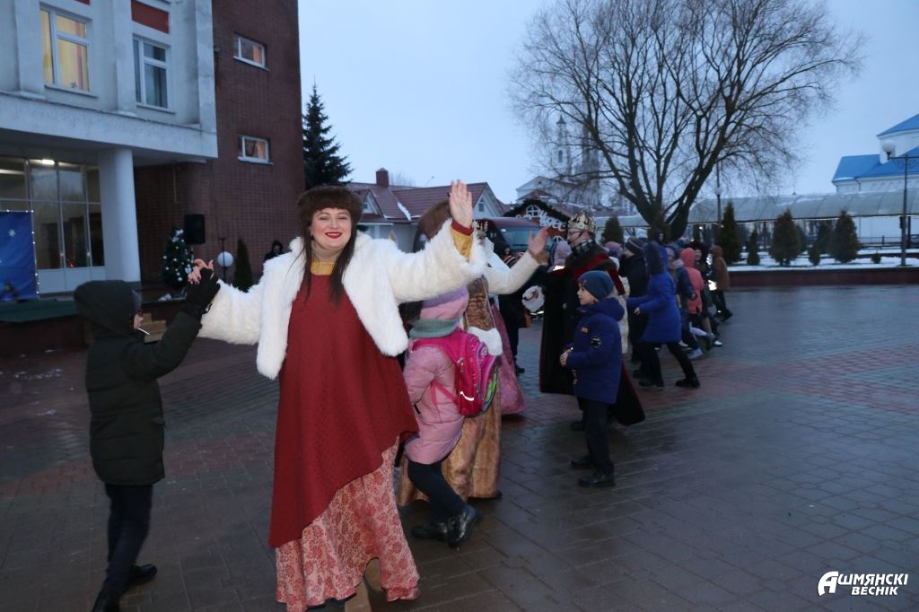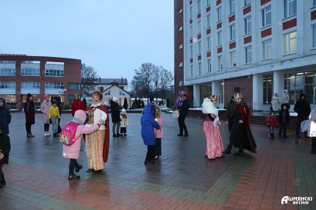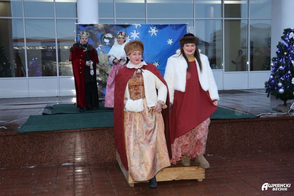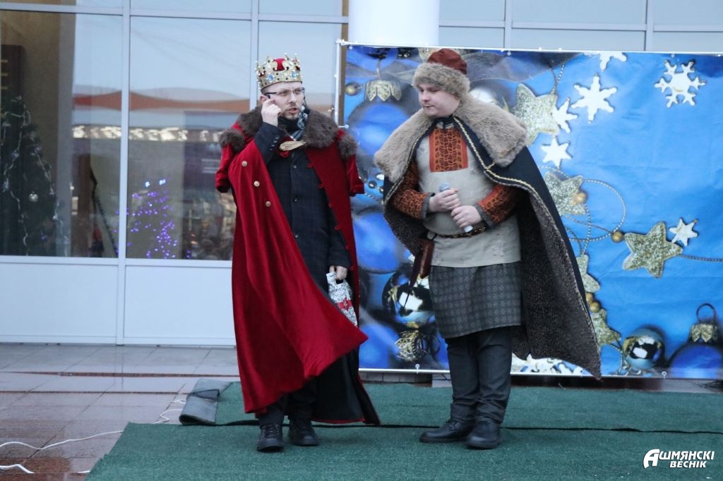Конечно, стоит признать, что погода изначально не способствовала праздничному настроению, однако постепенно артисты смогли «завести» публику: мастер-классы по средневековым танцам – «Ойра», «Морозуля» – в исполнении придворных дам, а также полюбившихся всем ошмянцам персонажей таинственного Гольшанского замка, колядные игры и гадания от цыганки Азы, а также Козы и Медведя пришлись всем по нраву. Стоит отметить, что после этого народ стал более живо реагировать на представление.