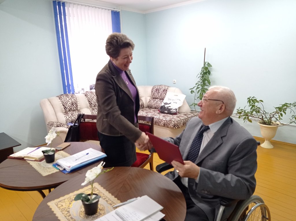 Председатель центрального правления общественного объединения «Белорусское общество инвалидов» Василий Лукашевич за многолетний добросовестный труд по защите прав людей с инвалидностью вручил грамоты центрального правления директору территориального центра социального обслуживания населения Лилии Неверкевич и заведующей отделением дневного пребывания для инвалидов Елене Катковской.