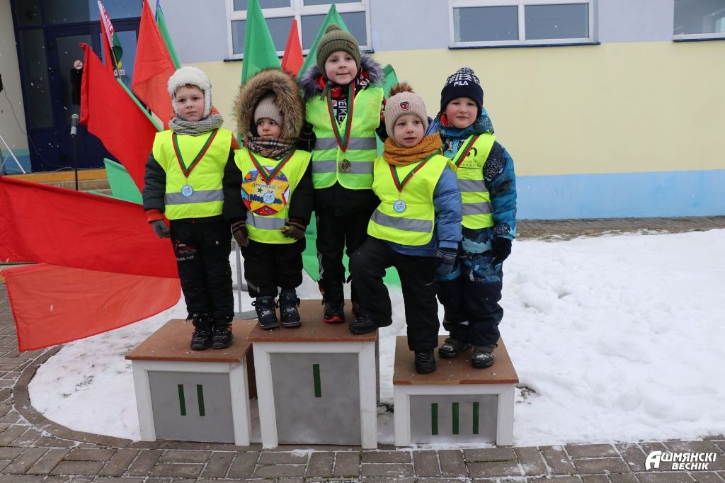 После регламента соревнований лыжники вышли на лыжню. Воспитанники детских садов города Ошмяны открыли соревнования своим стартом. Детская лыжная гонка оказалась самой трогательной и эмоциональной. Никто не хотел уступать, но, как и в любых соревнованиях, лидеры были определены. Малыши получили памятные медали. Для них работники культуры организовали игровую программу с участием костюмированных сказочных персонажей.