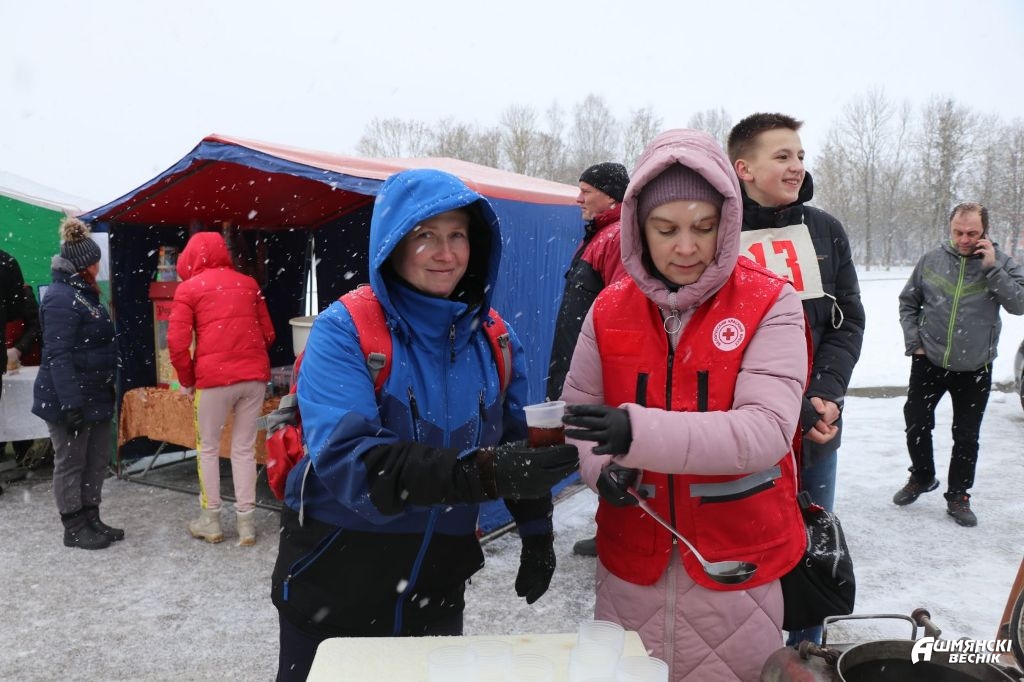 На старт участники соревнований выходили с уверенностью и хорошим настроением, упорством и волей к победе. Болельщики и зрители с азартом поддерживали участников. Дух соперничества сохранялся до конца соревнований. Участники лыжных стартов, болельщики и зрители смогли угоститься горячим чаем, кашей. Волонтеры районной организации Красного Креста взяли на себя обязательства угощать всех участников праздника. Купить сладости и выпечку, кондитерские изделия можно было у торговой палатки Ошмянского филиала Гродненского потребобщества.