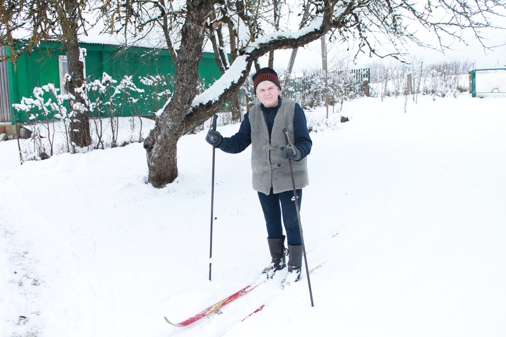 Заходзячы ў хату, я заўважыла ў сенцах лыжы. У галаве прамільгнулі розныя думкі. Аднак я і падумаць не магла, што сама гаспадыня, адклаўшы надзённыя справы, становіцца на лыжы і ўвішна дэманструе выдатныя навыкі. Убачыўшы маю збянтэжанасць, усмешлівая гаспадыня хуценька апранулася і стала на лыжы. Грацыёзнасць гэтай маленькай жанчыны здзівіла і на нейкі момант заваражыла.