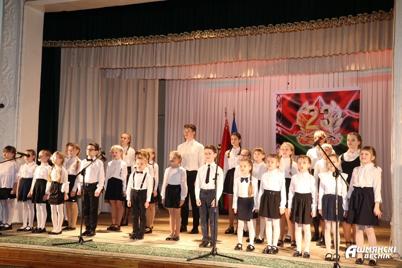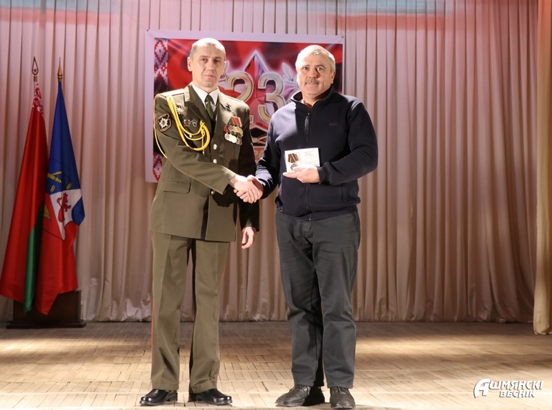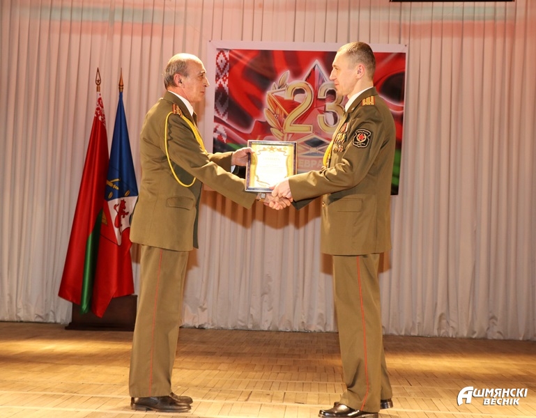 К словам поздравлений присоединился военный комиссар Ошмянского военного комиссариата подполковник Игорь Мисюкевич, вручивший юбилейную медаль «100 год Узброеным Сілам Рэспублікі Беларусь» воину-интернационалисту Антону Белявскому. Грамотой Вооруженных Сил Республики Беларусь награжден председатель районной организации Белорусского общественного объединения ветеранов Владимир Бельченко.