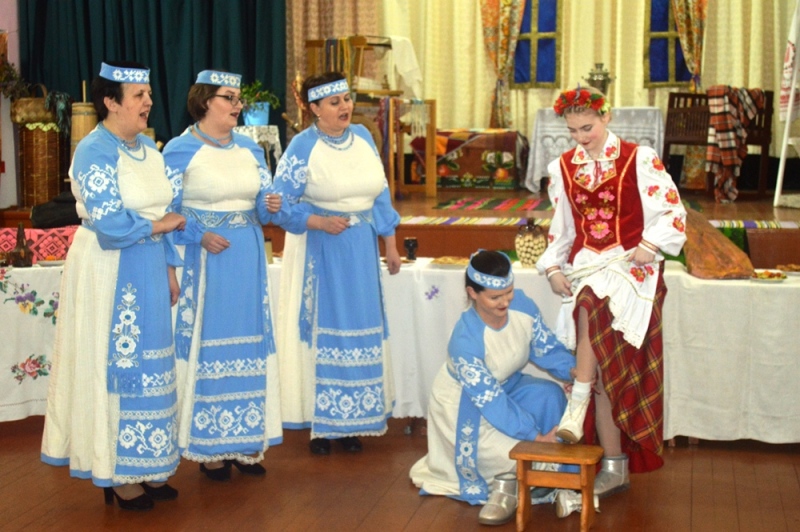 Пачалася абрадавая дзея з вуліцы Завадской, дзе пад музыку і песні святочны гурт заклікаў мясцовых жыхароў. Карагоды, гульні і дэгустацыя мясных ласункаў ужо на парозе аддзела культуры і вольнага часу стварылі ўдзельнікам загаўлін бодры настрой. З традыцыямі абраду прысутныя пазнаёміліся ў зале, у гэты дзень стылізаванай пад вясковую хату.