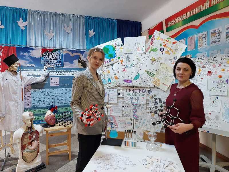 В день биологии и химии учителя Юлия Дервис и Ольга Винцковская подготовили тематическую фотозону, где любой желающий мог примерить на себя роль ученого. Ребята на протяжении недели «создавали» новый живой организм или химический элемент. Ольга Винцковская провела обучающее занятие на тему «Здоровый образ жизни» для волонтеров равного обучения.