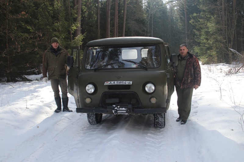 Поучаствовать в обустройстве кормушек для животных в любом из шести егерских обходов нашего района имеет право любой член коллектива. За подобные работы в организации начисляются баллы, которые потом можно потратить на льготы. А помощь тут никогда лишней не бывает, ведь обход достаточно большой — 28 тысяч гектаров — и располагается на территориях Гравжишковского, Крейванцевского и Кольчунского сельсоветов. И где-то на этих просторах установлены более 20 кормушек и 70 солонцов. Чтобы просто осмотреть их все, понадобится целый день. Объезжает свою вотчину егерь на «динозавре» советского автопрома — «буханке» УАЗ-33039, автомобиле повышенной проходимости, что является необходимым условием для бездорожья.
