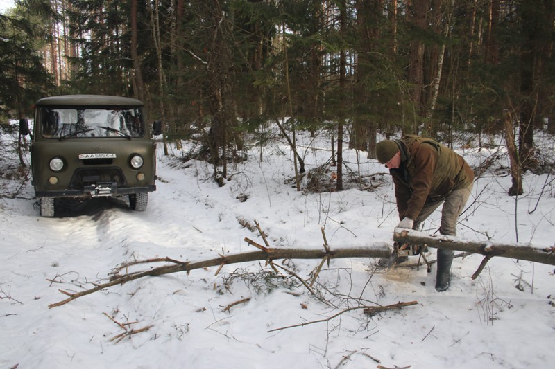 Поездка на «буханке» по лесным дорогам и полям — то еще удовольствие: кто ездил, тот поймет. Хорошо, что мороз сделал свое дело, и по полям мы шли пусть и не с крейсерской скоростью, но достаточно быстро и ровно. Застряли только один раз, когда в низине под автомобилем провалился лед и пришлось выбираться «с раскачки».