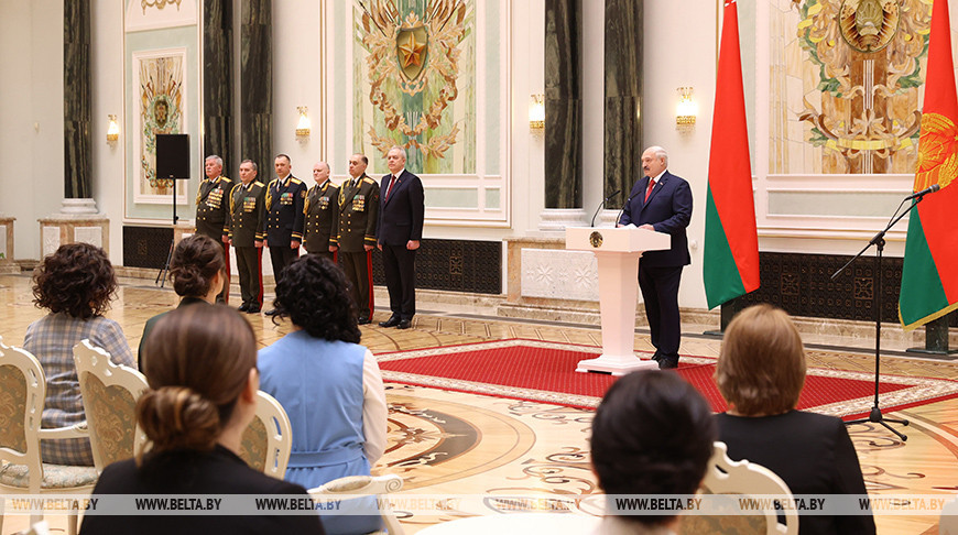 Награды и новые погоны, которые в торжественной обстановке получили участники церемонии, являются, по словам Президента, признанием больших личных заслуг перед Отечеством, подтверждением уровня профессиональной выучки и знаком высокого доверия белорусского народа.