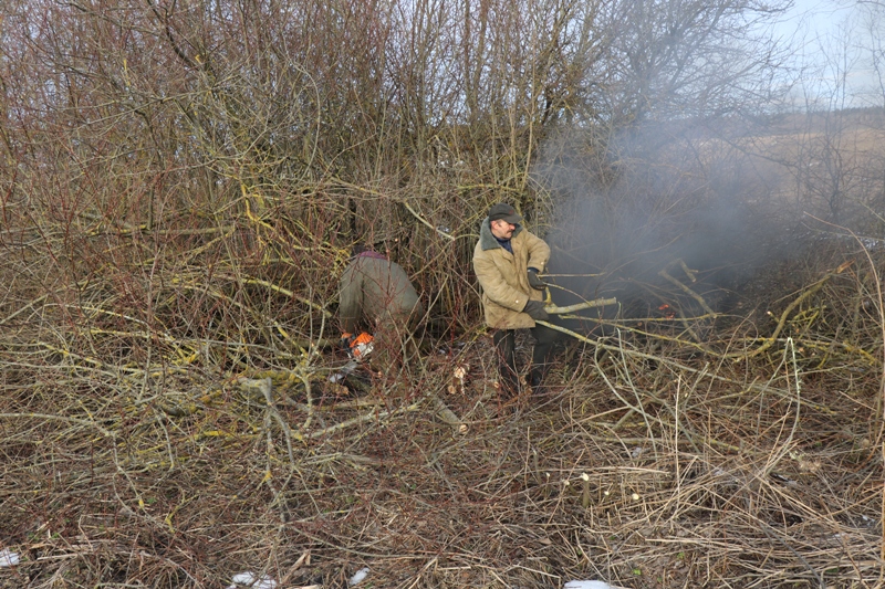 Корчевание дикорастущих кустарников ведут вдоль дороги Ошмяны – Онжадово. Здесь необходимо пройти и почистить почти километр территории. Трудятся на очистке работники КСУП «Крейванцы», привлечены сезонные работники сельсовета, на контроле держат эту работу старосты населенных пунктов. Вооружившись топорами и бензопилой, сельчане работают возле деревни Куцкуны и по дороге на Онжадово.