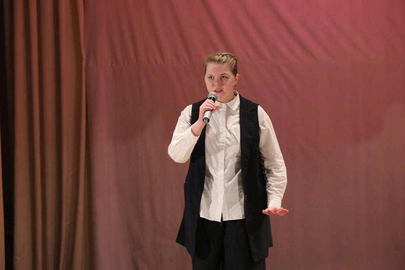 Ольга Шидловская, начальник отдела идеологической работы, культуры и по делам молодежи, пришла поддержать участников. Ольга Леонидовна отметила значимость патриотической песни, которая воспитывает молодежь, а также пожелала участникам и зрителям получить настоящее удовольствие от выступлений. Первой на сцену вышла Мария Воробьева с песней «Помни». Композиция до глубины души тронула зрителей и членов жюри, показав важность и цену мира. «Бухенвальдский набат» прозвучал в исполнении Дианы Умбрасас, а Вадим Павлюкович исполнил песню «Земля – наш общий дом». Дуэт Оксаны Кощиц и Анны Левкович напомнил присутствующим о ценности родной земли для каждого человека. Алина Стурлис исполнила песню на родном языке. Композиция «Родны мой горад» сделала акцент на важности того места, где человек родился и вырос. Ярким и трепетным оказалось выступление Артема Скороля, который восхитил не только отличным вокалом, но и живыми эмоциями. Ульяна Лугин исполнила песню «Я буду ждать», а Карина Кащиц – «Слава прошедшим тот Афган». Виктория Повайбо подарила слушателям трепетную композицию «Месяц май», а Дарья Лукашевич напомнила о боевых орденах, которые так нелегко доставались нашим солдатам. Дружная группа поддержки пришла поболеть за Валерию Концевую. Конкурсантка исполнила песню «На зоре, на зореньке». Завершила конкурсную программу Ксения Дорняк, которая предстала перед зрителями в национальном костюме и исполнила песню «Белая ластаўка”.