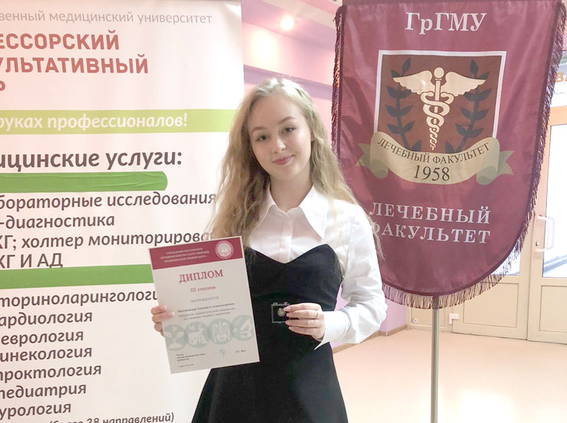 Победа в университетской олимпиаде (диплом III степени) дает право Елизавете Заянчковской быть зачисленной без вступительных испытаний в Гродненский государственный медицинский университет на специальность «лечебное дело».