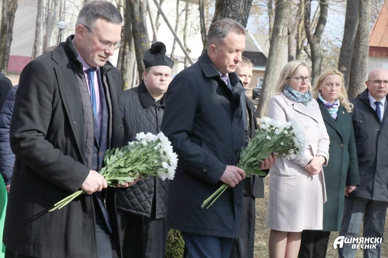 — В истории каждого народа есть события, которые не подлежат забвению. Трагедия Хатыни и тысячи деревень и городов с такой же судьбой — это неутихающая боль в сердцах белорусов, всех советских людей, — отметил председатель Ошмянского райисполкома Владислав Гершгорин. — Сегодня, 22 марта, в день 80-й годовщины трагедии деревни Хатынь мы собрались у братской могилы погибших воинов, освобождавших наш район от немецко-фашистских захватчиков, чтобы вместе со всей страной поклониться воинам-освободителям, почтить память невинных и защитить правду о той войне.