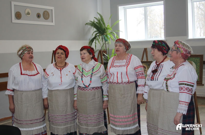Клаўдзія Васілеўская на працягу доўгага часу займаецца вышыўкай. Яе працы – сапраўдныя шэдэўры, “намаляваныя” з дапамогай іголкі. Найбольш жанчыну прывабліваюць вышываныя іконы. Выявы Багародзіцы, святых, анёлаў склалі адмысловую выставу. Галіна Селістроўская таксама з’яўляецца аматарам вышыўкі. Жанчына зазначае, што любоў да справы ўзнікла яшчэ ў дзяцінстве. Назіраючы за тым, як вышывае мама, яна вырашыла навучыцца гэтай нялёгкай справе. З-пад яе іголкі выходзяць вясновыя пейзажы, рамантычныя жаночыя вобразы, каляровыя нацюрморты. На працу над адной карцінай жанчына затрачвае каля чатырох месяцаў. Больш за 100 вышываных шэдэўраў з’явілася за ўвесь час. Часцей за ўсё свае працы яна дорыць родным і блізкім. Ігара Ціханскага і Гэлену Скавінскую захапіла бісерапляценне. Гэты занятак супакойвае, дорыць гармонію і радасць. Гэлена яшчэ і цудоўна вяжа. Яна прадэманстравала свой выраб, які надзвычай уразіў удзельнікаў. З мастацтвам выцінанкі прысутныя пазнаёміліся дзякуючы працам Святланы Сярпейкі. Адмысловыя матылькі, сняжынкі, жаночыя сілуэты – вырабы з паперы здзіўляюць. Многім вядома імя майстра на ўсе рукі Мар’яна Козара. Для выставы ён падрыхтаваў гліняныя вырабы. Калі глядзіш на іх, здаецца, пераносішся ў мінулае, вяртаешся да вытокаў і сваіх каранёў. Званочкі, свісцёлкі, збанкі, разнастайныя фігуркі перадаюць настрой аўтара, цеплыню яго рук і сэрца. І ў гэты час прыходзіць разуменне – чалавечым рукам падуладна ўсё. Але не толькі рукатворнай працай можна праслаўляць сваю краіну. Многія наведвальнікі аддзялення дзённага знаходжання валодаюць цудоўным голасам. Джэма Жураўлёва выдатна спявае і з’яўляецца ўдзельніцай хору ветэранаў. Падарыў добры настрой прысутным і фальклорны гурт “Скарбніца”. Галіна Даўгашэй і Генуэфа Кеўра пішуць вершы. Ашмянскія паэткі часта сустракаюцца з прыхільнікамі паэзіі, а іх творы з’яўляюцца на старонках перыядычных выданняў. Тамара Філіповіч расказала прысутным пра гісторыю стварэння сваёй кнігі, якая так палюбілася жыхарам Ашмянскага раёна.