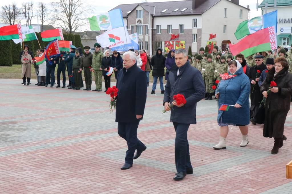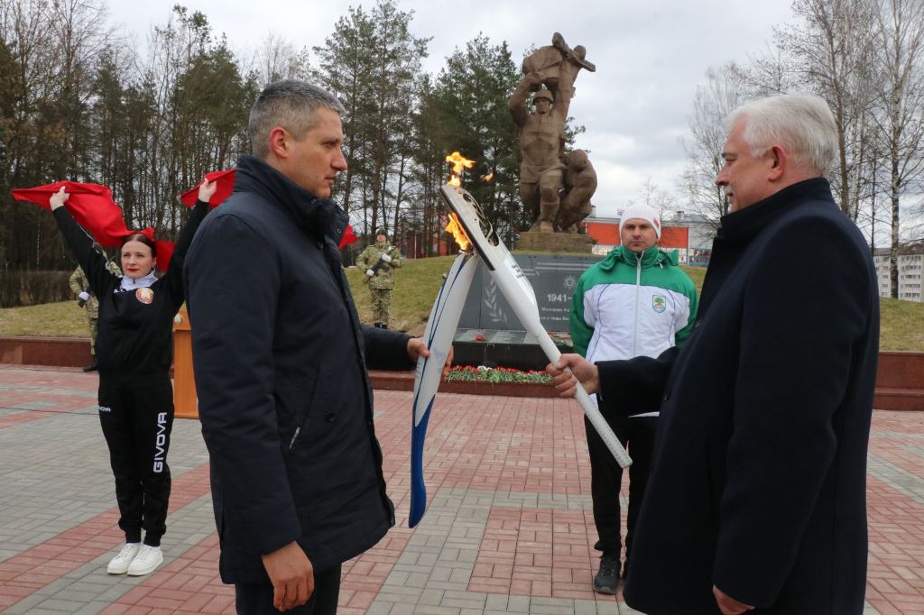 В среду, 29 марта, делегация Ошмянского района во главе с председателем районного исполнительного комитета Владиславом Гершгориным направилась в Островец. Здесь у памятника советским воинам и партизанам прошел митинг, во время которого островчане передали факел с «Огнем созидания» ошмянцам.