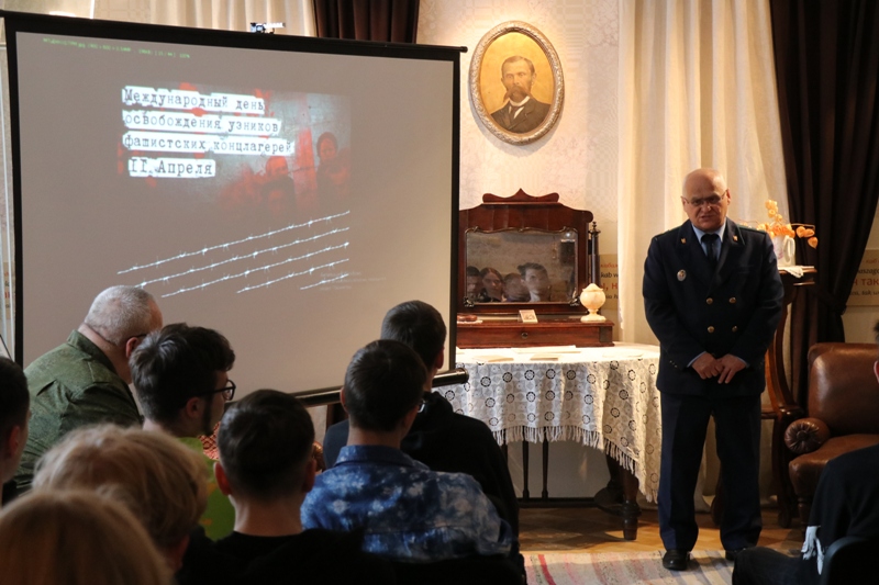 Директор музея Анастасия Новицкая, приветствуя участников встречи, напомнила факты истории. Она отметила, что по решению Организации Объединенных Наций 11 апреля во всем мире признано Днем освобождения узников фашистских концлагерей. Он установлен в память об интернациональном восстании в Бухенвальде. Именно в этот день в 1945 году узники Бухенвальда во главе с интернациональным политическим центром подняли вооруженное восстание, в результате которого захватили лагерь и удерживали его до прихода союзных войск. В апреле 1945 года были освобождены узники Заксенхаузена, Майданека, Дахау, Равенсбрюка. Бухенвальд и много других мест на карте Европы в годы Второй мировой войны были превращены в жернова смерти, орудия массового физического уничтожения людей, лаборатории для проведения медицинских и других экспериментов.