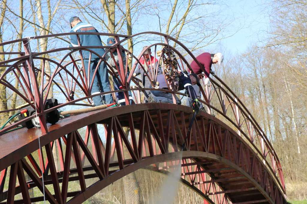 Яркими красками заиграл еще один любимый горожанами объект — мостик любви. Благодаря усилиям Ошмянского района газоснабжения, районного филиала КУП «Гроднооблтопливо» и Ошмянскому участку ПТУП «Гродненский областной комбинат противопожарных работ» РГОО «БДПО» сам мостик и декоративное дерево рядом с ним засияли под кисточками мастеров.