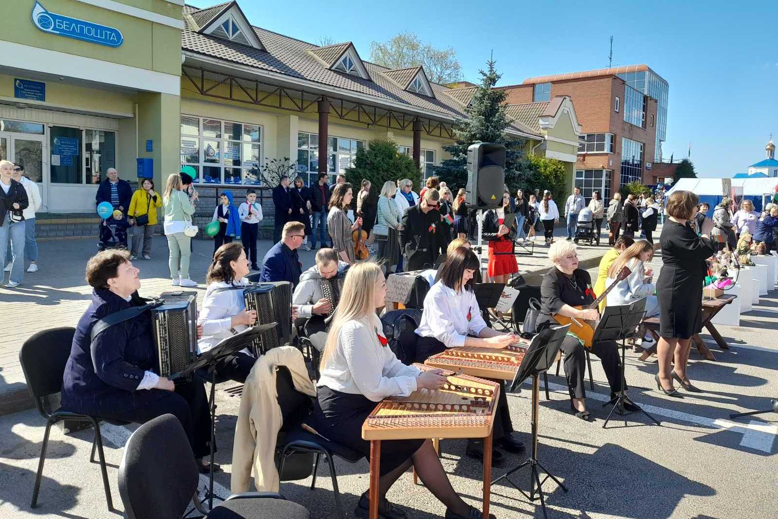 Гостей праздника везде сопровождала музыка. На площадке возле здания почты было многолюдно – здесь прямо под открытым небом исполняли инструментальные композиции и песни военных лет народный ансамбль народных инструментов «Карусель» и преподаватели Ошмянской детской школы искусств.