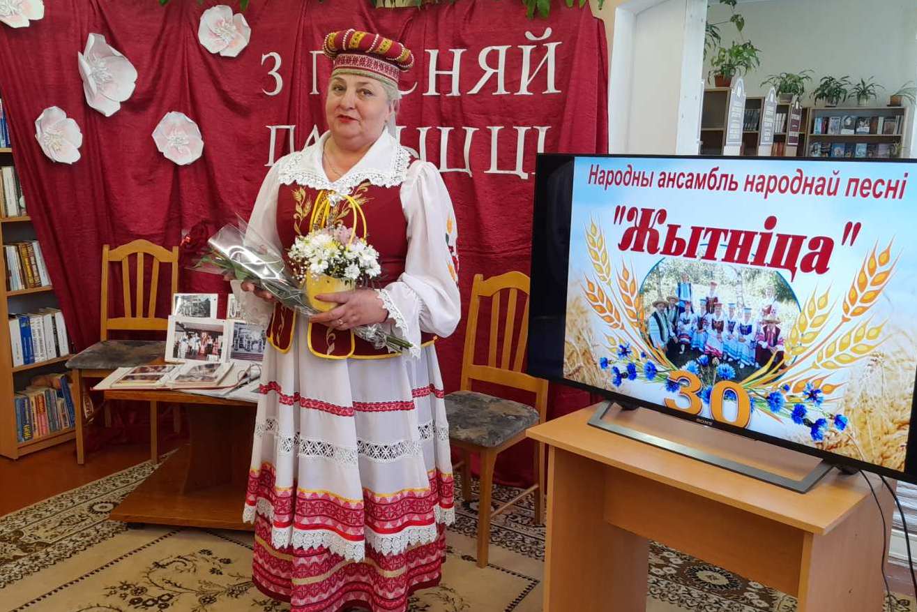На пытанні вядучай — загадчыцы аддзела абслугоўвання і інфармацыі раённай бібліятэкі — Алены Янкоўскай адказвала ўдзельніца ансамбля, таленавітая выканальніца народных песень Роза Яцуковіч. Нягледзячы на тое, што ўдзельнікі аматарскага аб’яднання “Сустрэча” добра знаёмы з творчасцю “Жытніцы”, некаторыя звесткі з біяграфіі Розы Георгіеўны і гісторыі песеннага калектыву сталі для іх новымі.