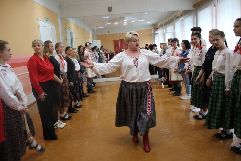 У актавай зале ўдзельнікаў майстар-класаў ужо чакаў узорны ансамбль песні і танца “Званочкі”. Удзельнікі ансамбля прывіталі гасцей і падаравалі ім некалькі выдатных нумароў. Фальклорныя кампазіцыі здзівілі і ўразілі слухачоў. Кіраўнік ансамбля Вера Федарэнка расказала пра станаўленне фальклорнай групы, удзел у конкурсах і фестывалях, а таксама падзялілася сакрэтамі паспяховай дзейнасці. Прысутнічала на мерапрыемстве і Святлана Баркоўская, начальнік упраўлення адукацыі. Яна падзякавала прысутным за тое, што знайшлі час і прыехалі на майстар-класы.