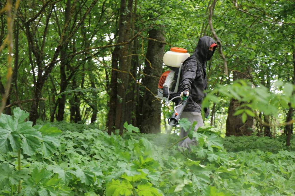 В этом году к его уничтожению подключились сельсоветы, лесничества, Ошмянские электрические сети, Ошмянский участок Сморгонского предприятия мелиоративных систем. Работники районного отдела по чрезвычайным ситуациям также привлекаются к химобработке территорий, занятых инвазивным растением. С помощью специальных опрыскивателей они распыляют в день около тонны приготовленного раствора ядохимиката.