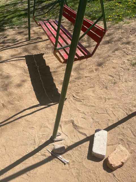 Как выяснилось, техническое состояние некоторой части игрового оборудования в нашем городе является неудовлетворительным и может привести к получению травм. Например, на игровой площадке по улице Красноармейской, что рядом с домами №2 и №4, находятся остатки турника в виде бетонной конструкции с металлической трубой, сиденье качелей повреждено, а песочница находится в ненадлежащем состоянии.