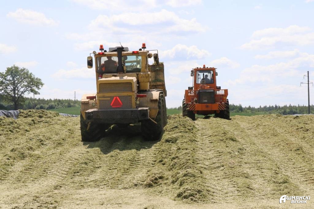 — Сёння плануем закрыць траншэю, — расказвае загадчык комплексу «Біюцішкі» Ганна Шамко. — Для герметычнасці ўтрамбаваная маса накрываецца плёнкай, а зверху — выкарыстанымі шынамі або мяшкамі з пяском. Дзесьці праз месяц кансервацыі можна будзе даследаваць корм на ўтрыманне галоўнага пажыўнага рэчыва — бялка.