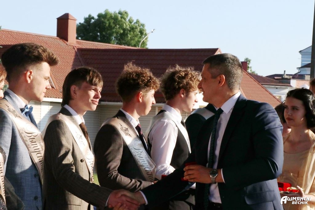 — Уважаемые выпускники, вы стоите на пороге самостоятельной взрослой жизни. Перед вами и перед всем молодым поколением огромное пространство возможностей, динамичный увлекательный мир, в котором можно добиться очень многого, — отметил в своем обращении к выпускникам председатель райисполкома Владислав Гершгорин. — Все, что для этого нужно, настойчивость и целеустремленность. Большинство из вас уже сделали важный выбор: решили, на каком профессиональном поприще смогут реализовать свои способности. Три выпускника являются студентами высших учебных заведений по результатам вузовских олимпиад. Один – по рекомендации Национального технопарка. 35 человек заключили целевые договоры с организациями и предприятиями нашего района. Мы верим, что после окончания учебных заведений вы вернетесь на Ошмянщину и посвятите себя любимому делу на родной земле, будете развивать район, благоустраивать, хранить и приумножать его традиции. Ваш талант, энергия, инициатива, активная жизненная позиция востребованы именно здесь. Нам нужны грамотные специалисты: строители, врачи, работники сельского хозяйства, сотрудники милиции, педагоги, представители рабочих профессий. Гордитесь нашей Родиной, и она обязательно будет гордиться вами!