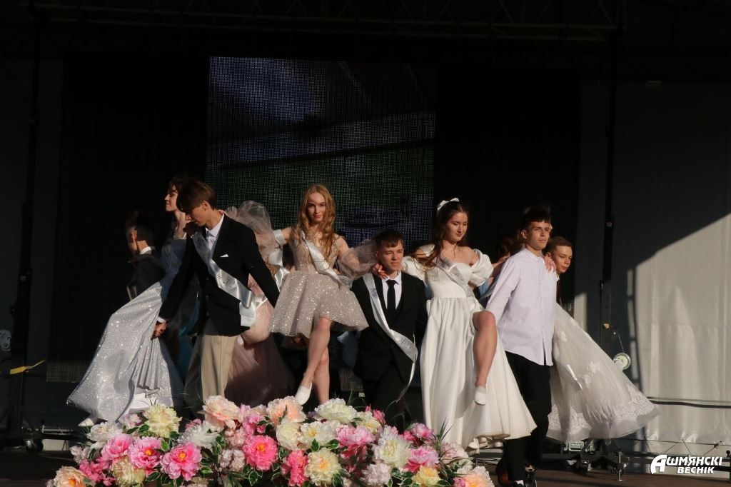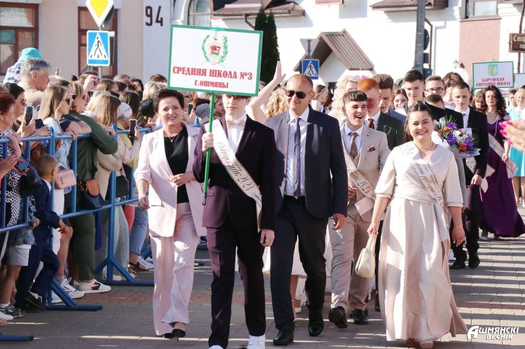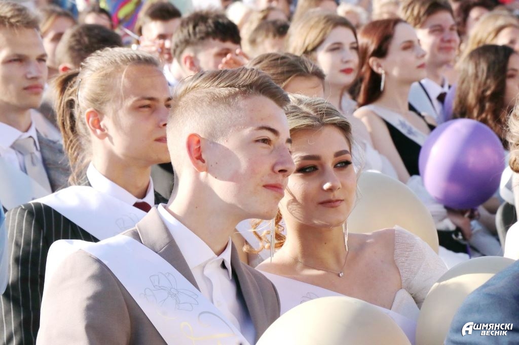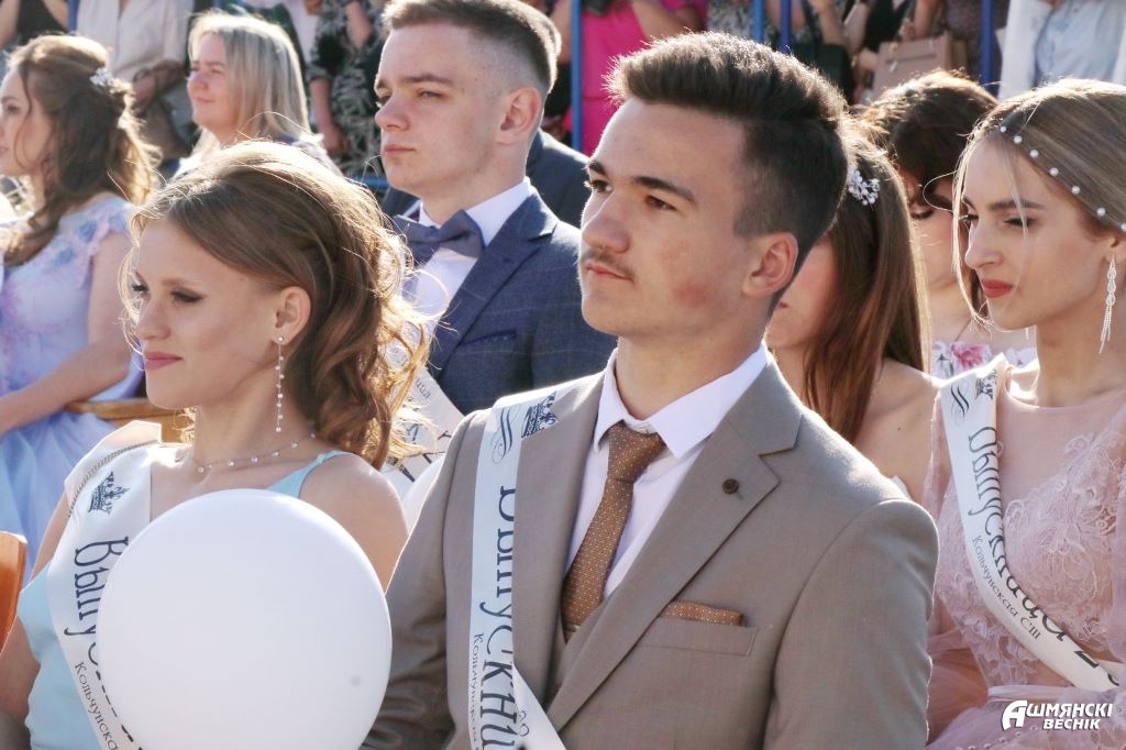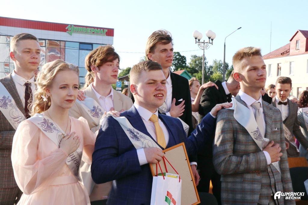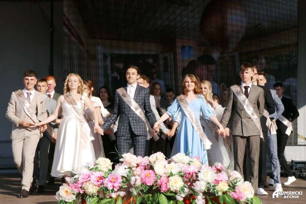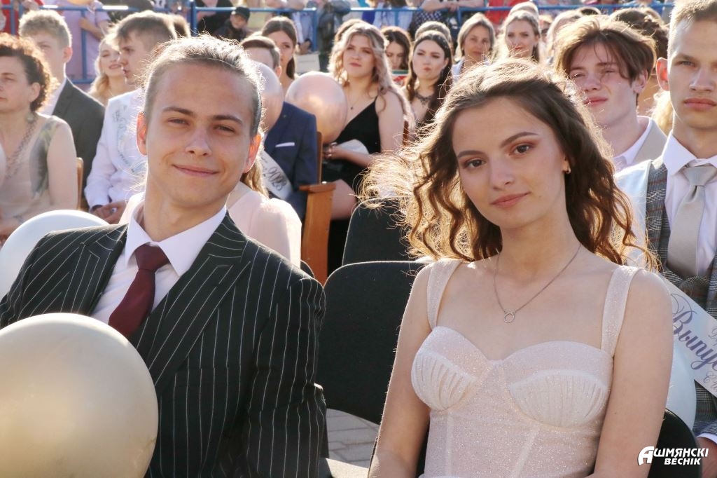 Все внимание направлено на их, 163 выпускников учреждений образования Ошмянского района, таких красивых, легких и окрыленных. Они совсем не похожи на школьников: девчата – в стильных вечерних платьях, мальчишки – в элегантных костюмах. А еще вчера, кажется, они были неуверенными первоклассниками, у которых все было впереди.