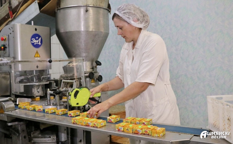 Чтобы понаблюдать за разными этапами, переходим из производственной лаборатории в отделение выращивания чистой культуры и далее к машинистам расфасовочно-упаковочных машин. У Янины Траймак за плечами 24 года стажа, ее действия выверены и точны — ловкими движениями она «дирижирует» на своем конвейере. Чувствуется сноровка и у Светланы Фурсы, которая душой прикипела к заводу.