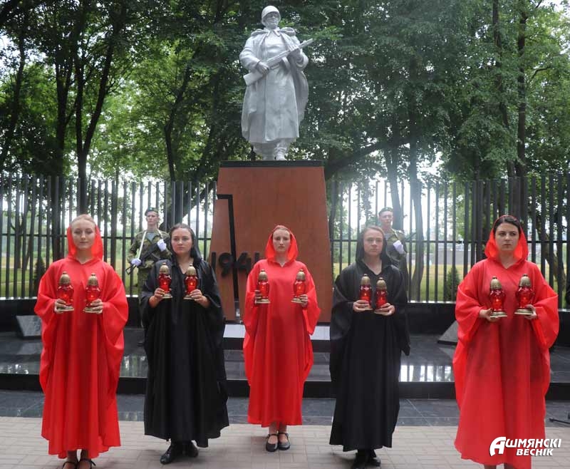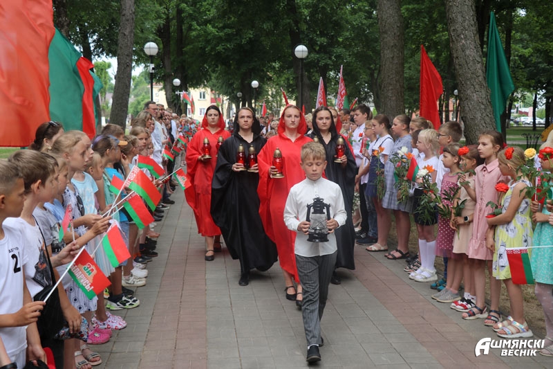 Лампады с символом памяти — «Вечным огнем» — были зажжены у братской могилы и переданы председателям сельисполкомов, где в этот день также проходят митинги.