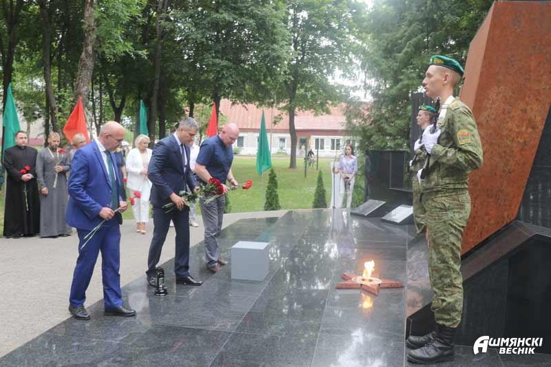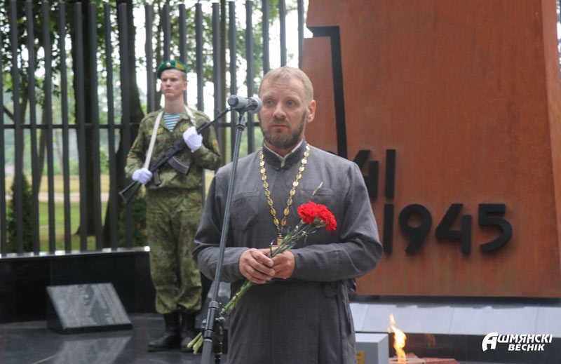 — 22 июня 1941 года — один из самых трагических и скорбных дней в истории нашей страны. Ранним утром, на рассвете фашистская Германия вероломно напала на Советский Союз. Ее авиация нанесла массированные удары по аэродромам, железнодорожным узлам и многим городам. Первой удар фашистов приняла белорусская земля. Сегодня по-особенному понимаешь цену спокойного летнего утра, за которое 82 года назад стояли насмерть защитники наших рубежей, — обратился к присутствующим председатель Ошмянского райисполкома Владислав Гершгорин. – За время боевых действий и немецкой оккупации ошмянская земля понесла значительный урон. Были уничтожены полностью или частично 16 деревень, расстреляны 1793 мирные жителя, 325 наших земляков не вернулись с войны.