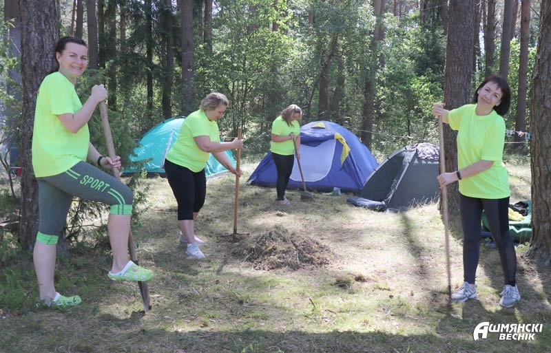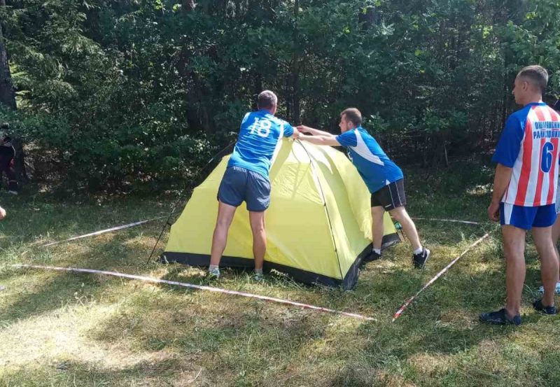С самого утра на место соревнований начали прибывать участники команд. Пока одни проходят полосу препятствий, тянут канат или играют в волейбол, другие обеспечивают надежный тыл: расставляют палатки, рубят дрова, готовят ужин.