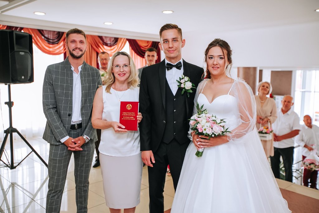 В преддверии главного праздника страны в отделе ЗАГС было засвидетельствовано рождение двух семей. У Романа и Эльжбеты Шульжицких церемония регистрации брака прошла с использованием национальных традиций. Поздравить молодоженов и разделить с ними радость события пришло большое количество родных и близких.