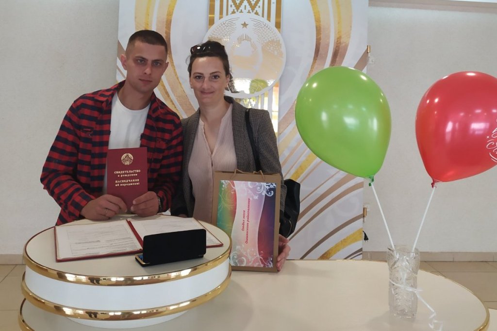 В семье Дмитрия и Оксаны Шепет родился сын Кирилл. А у ошмянцев Евгения и Анастасии Свидович – еще один мальчик, которого родители назвали Дамиром. Старший сын Макар пришел в отдел ЗАГС вместе с отцом, чтобы получить первый документ братика. Вместе со свидетельством в красной обложке с государственной символикой малышам были вручены сувениры.