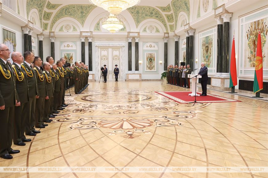 «В нашей стране защита Родины была и будет в руках мужественных, сильных духом и отважных людей. Таких, как вы — настоящих мужиков, надевших офицерский мундир в столь трудное и порой непредсказуемое время», — подчеркнул белорусский лидер.