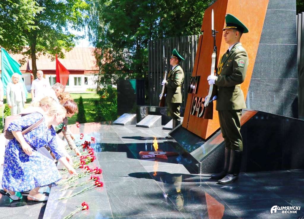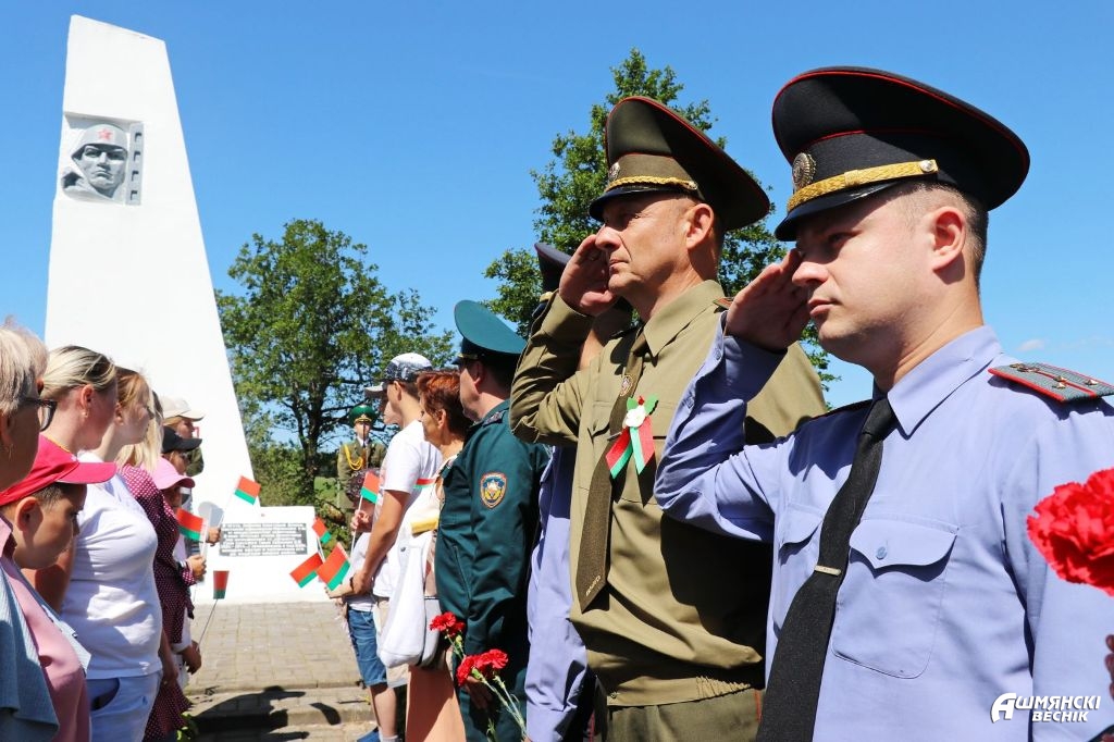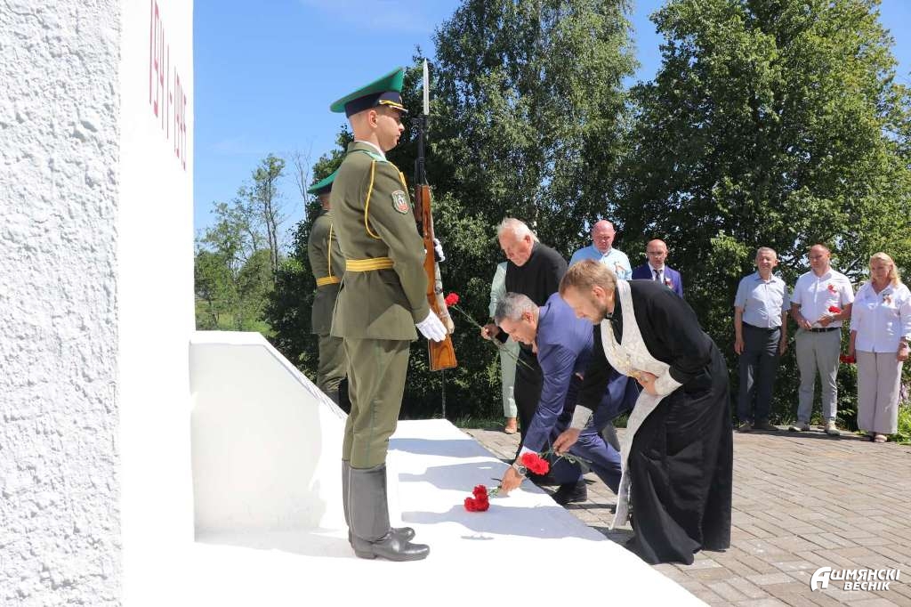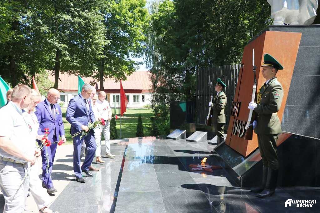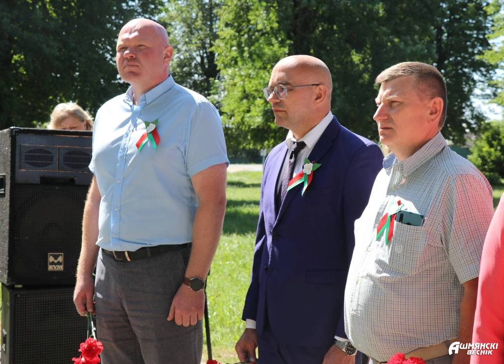 — В годы Великой Отечественной войны на временно оккупированной немецкими войсками территории развернулось невиданное по масштабам всенародное сопротивление. Мы горды тем, что в этой славной военной летописи есть подвиги и наших земляков. Тысячи уроженцев и жителей Ошмянщины сражались с врагом на фронтах войны. Они защищали Москву и Сталинград, участвовали в сражении на Курской Дуге, били врага на Висле и Одере, прошли победным маршем по улицам Берлина, — отметил, обращаясь к участникам митинга, председатель Ошмянского райисполкома Владислав Гершгорин. – Освобождение нашего района от немецко-фашистских захватчиков проходило в составе крупнейшей наступательной операции «Багратион» успешно проведенной командованием советских войск летом 1944 года. Осуществлялась она силами 4 фронтов. Активно участвовали в операции и партизанские соединения, — подчеркнул глава района и отметил, что долг каждого белоруса – бережно хранить каждую крупицу правды о войне.