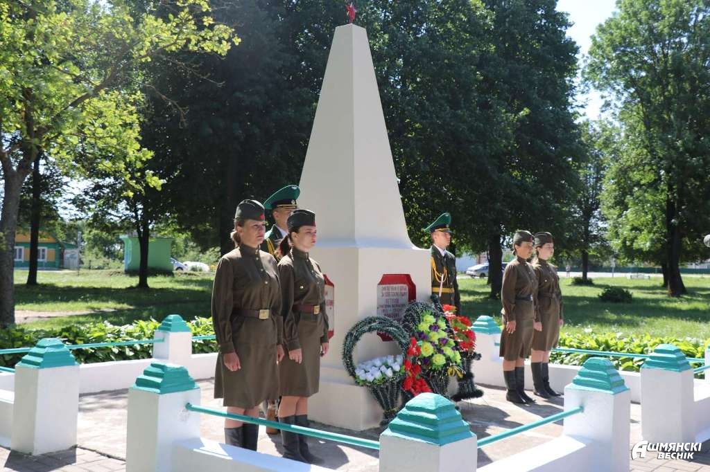 Неслучайно первым пунктом в маршруте автопробега стал памятник воинам-землякам в агрогородке Станция Ошмяны. Ведь именно этот населенный пункт был освобожден одним из первых в нашем районе. 5 июля 1944 года отряд 449 стрелкового полка в 18 часов атаковал Станцию Ошмяны. Более мелкие группы полка перерезали в двух местах железную дорогу на перегоне Солы-Ошмяны. В этом бою немцы понесли значительные потери.