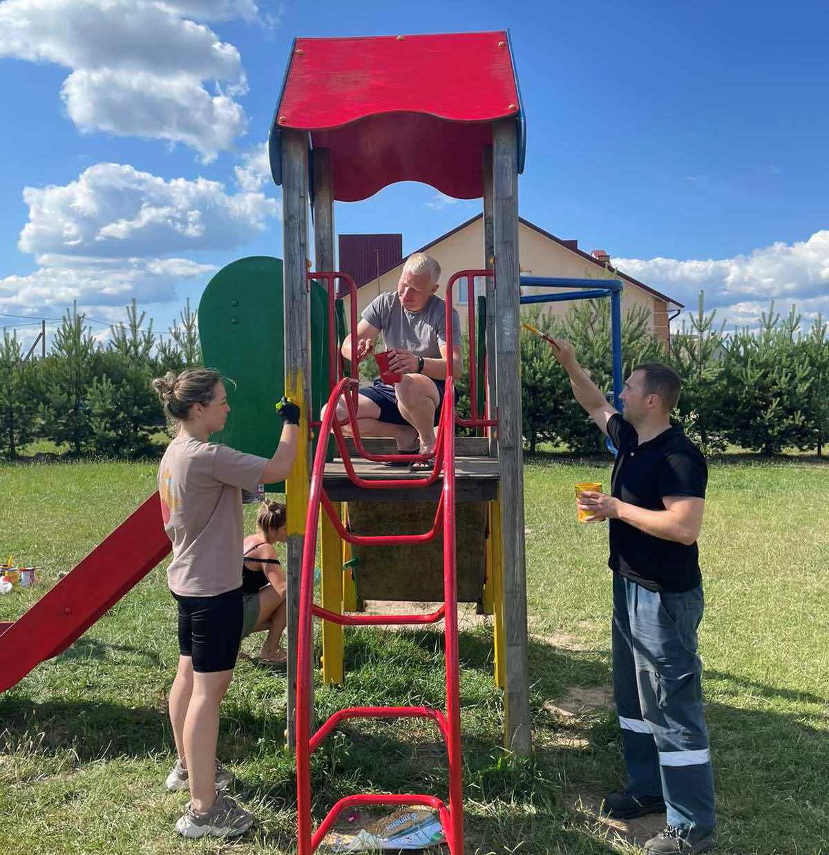 Ошмянская молодежь заметила такую негативную тенденцию и выступила с инициативой «Не проходи мимо! Прояви инициативу – сделай сам!», суть которой заключается в приведении в порядок детских площадок. Первым объектом для реставрации стала площадка возле магазина «Купаловский». Несколько лет назад хозяева магазина установили на территории, прилегающей к торговому объекту, песочницу, качели и красочную горку. Однако через некоторое время площадку было не узнать.