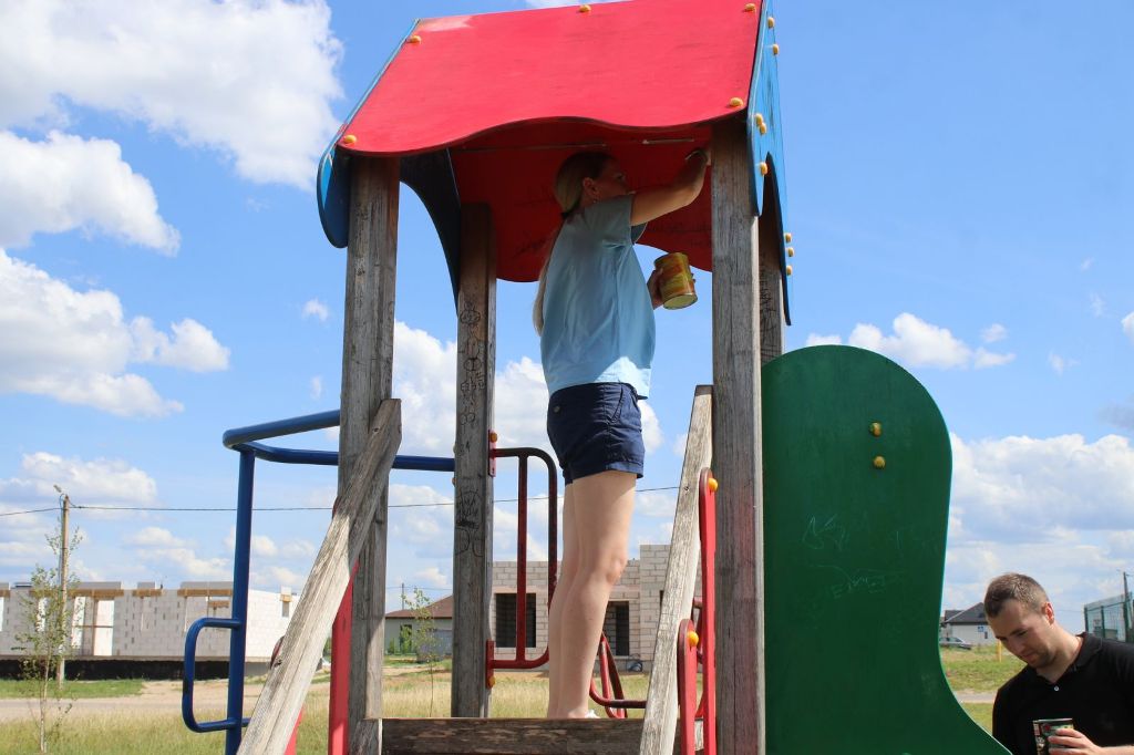 Граффити, сломанные элементы, царапины и сколы – все это стало удручающей реальностью. Вооружившись краской, кисточками и другим необходимым инвентарем, представители Молодежного парламента при районном Совете депутатов отправились на площадку. Марта Сташкевич, участница инициативы, живет неподалеку и хорошо знает ситуацию: