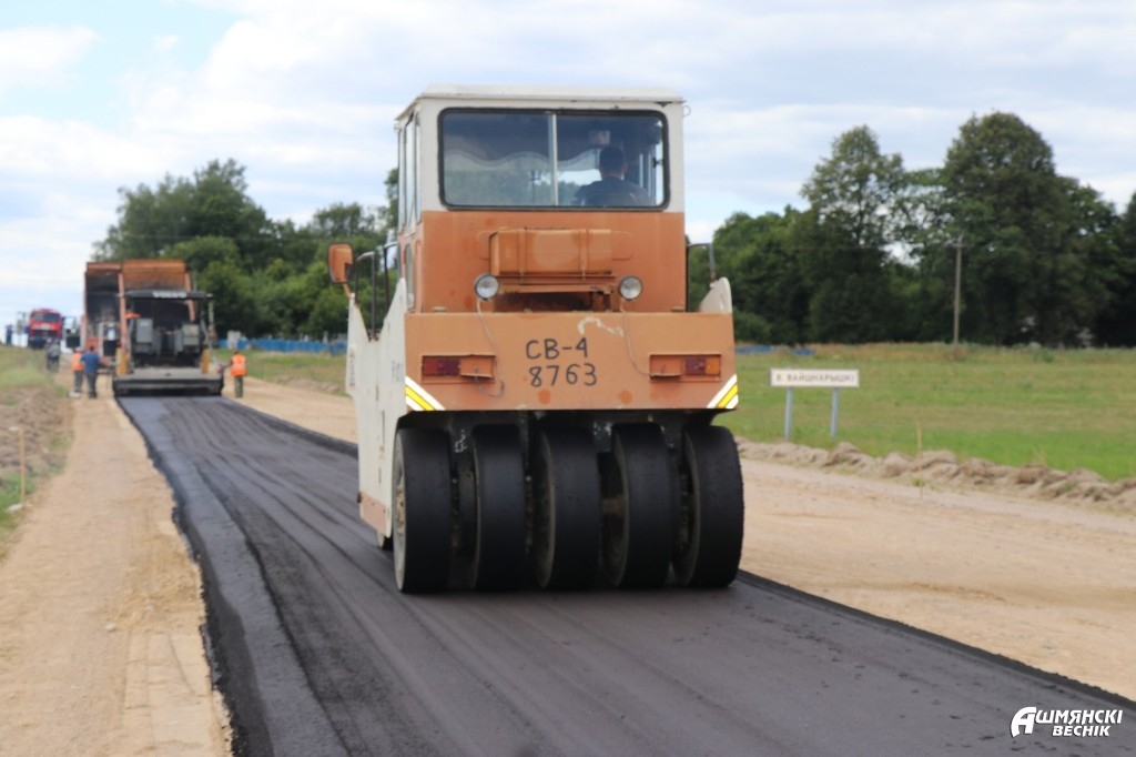 В настоящее время работники ДРСУ-159 укладывают асфальт на участке между Большими и Малыми Войшнаришками.