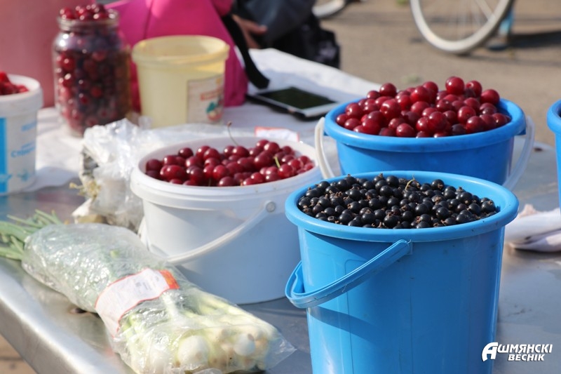 Каляровыя слоікі, напоўненыя вішнямі, чарэшнямі, дурніцамі, агрэстам, парэчкамі, прывабліваюць вока. Пакупнікі параўноўваюць цэны, гутараць з прадаўцамі. Папулярнасцю карыстаецца садовая маліна, яе кошт – 5 рублёў за літр. Дурніцы таксама карыстаюцца попытам. Жыхарка Ашмян Людміла Ігнатовіч прадае ягады па 15 рублёў за кілаграм. Буйныя і прыгожыя, яны так і просяцца ў рот.