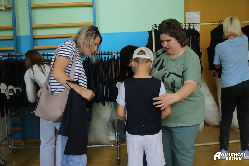 20 июля представители фабрики приехали в гимназию, чтобы порадовать учеников только отшитыми моделями школьной формы. В коридоре учреждения очень многолюдно: мамам и папам уже не терпится нарядить детей в новенькую форму. Татьяна Ракалович пришла вместе с мужем Виталием и сыновьями Дмитрием и Олегом. Женщина тщательно выбирает брюки для своих мальчишек. Для Дмитрия выбор формы – процедура привычная. Мальчик перешел в третий класс и уже успел оценить все прелести ношения школьной формы. Олег в этом году впервые переступит школьный порог. Он слегка волнуется, ведь подобная примерка – первая в его жизни.