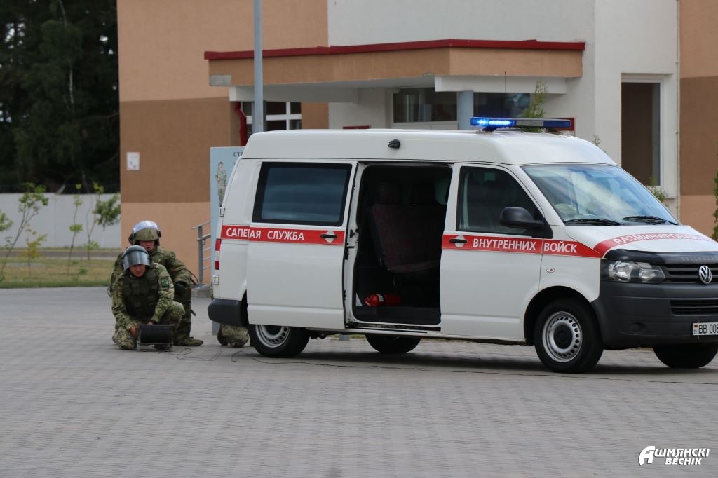 Проверка боевой готовности нового отряда спецназначения прошла на базе войсковой части 7434. За отработкой условных ситуаций на различных локациях следили также генеральный директор Белорусской атомной станции Михаил Филимонов, заместитель председателя Островецкого райисполкома Геннадий Бычко и др.