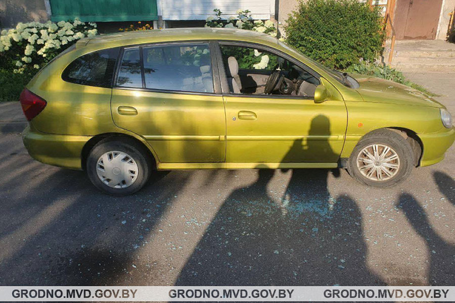 В середине июля 29-летний житель Ошмян сидел на скамейке вблизи одного из домов в ночное время. Мужчина обратил внимание на рядом стоящие припаркованные транспортные средства без нарушений ПДД. В какой-то момент он подошел к автомобилю марки «Kia» и беспричинно стал наносить удары руками по стеклу правой передней пассажирской двери, а затем ушел. Владелец машины утром увидел повреждение и сообщил об этом в милицию.