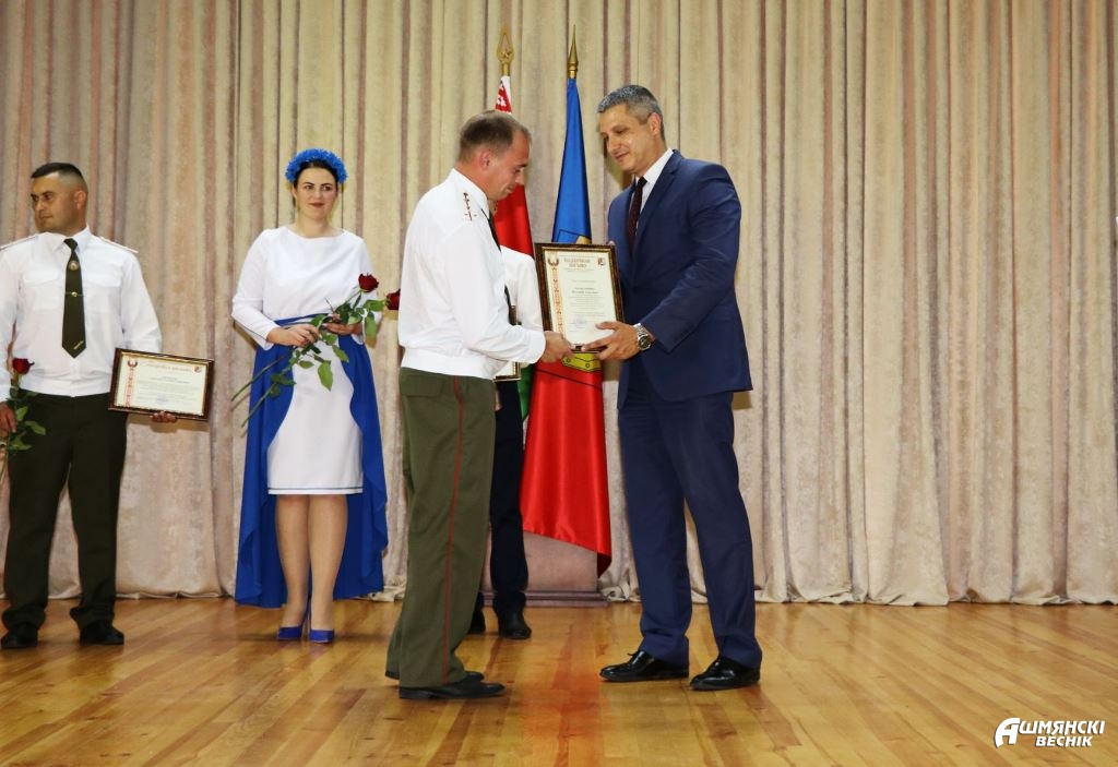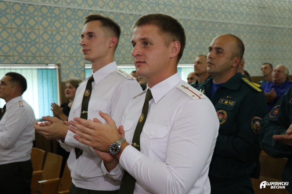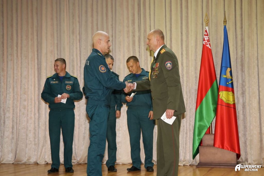 Благодарность за мужество и профессионализм выразил коллегам и начальник Ошмянского РОЧС Андрей Горбач. За значительный вклад в предупреждение и ликвидацию пожаров и чрезвычайных ситуаций, образцовое выполнение служебных обязанностей Андрей Константинович вручил нагрудный знак «Выдатнік» Министерства по чрезвычайным ситуациям Республики Беларусь старшему инструктору-спасателю ПАСП №12 агрогородка Гольшаны Михаилу Игнатовичу. Грамоты областного управления МЧС, памятные нагрудные знаки, а также очередные специальные звания принимал еще ряд работников подразделений РОЧС.