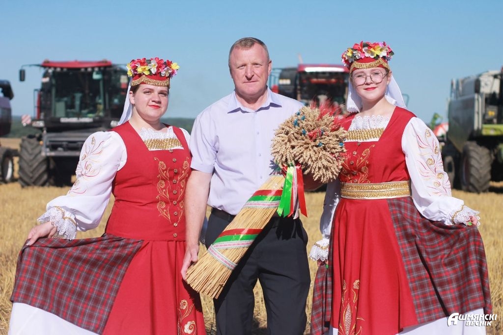 З віншавальным словам да прысутных звярнуўся і галоўны аграном Руслан Струхоўскі. Ён адзначыў, што два летнія месяцы былі асабліва гарачымі. Зразумела, што такая акалічнасць паўплывала на якасць ураджаю. Аграном падкрэсліў, што трэці месяц таксама будзе гарачым, але ўжо для хлебаробаў. На іх плечы ўскладзена вялікая адказнасць – збор новага ўраджаю.