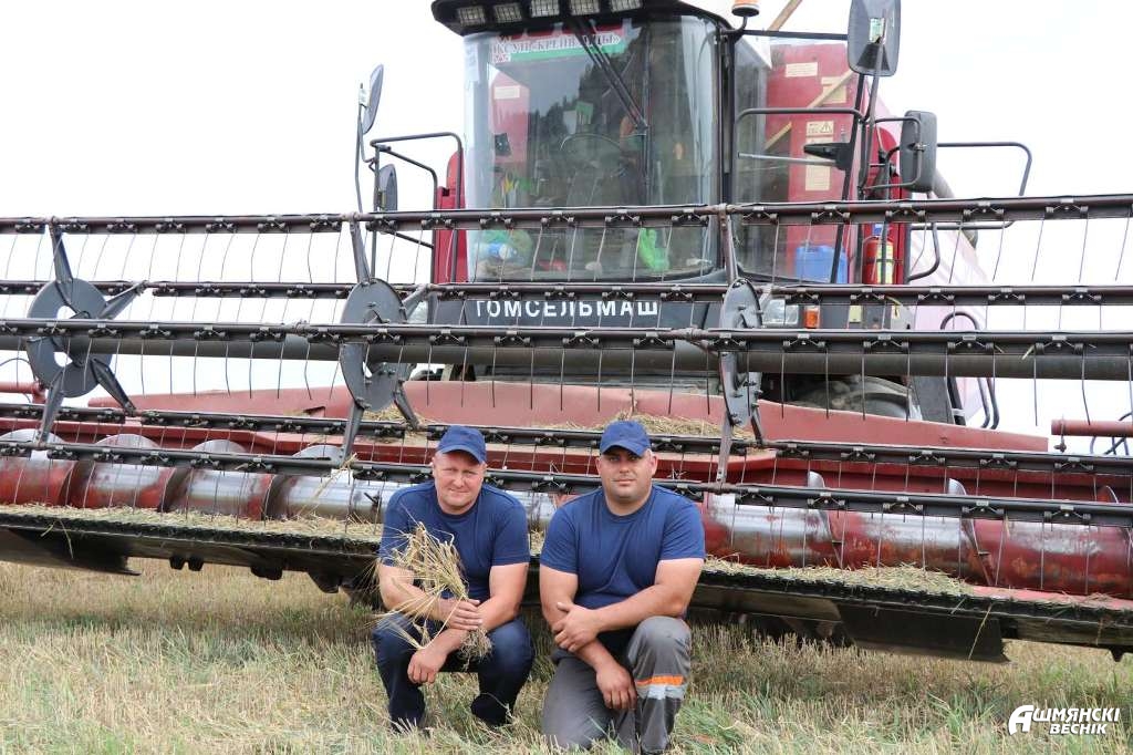 Следя за тем, как слаженно трудятся на хлебной ниве комбайнеры, понимаешь: сельчане знают толк в своем деле. Новичков здесь нет. Все люди опытные, трудятся в хозяйстве не по первому десятку лет. Уверенно ведет машину и Андрей Петкевич. За плечами у него более 20 лет механизаторского стажа. Уборочная страда у мужчины пятнадцатая. Сплав опыта и старательности позволяют Андрею из года в год быть в передовиках. Вот и на этой жатве он лидирует по намолотам, как и его коллега Алексей Масевич, задействованный на уборке рапса. Стараются не отставать от товарищей и другие комбайнеры – Андрей Ивашко, Владимир Давлевич, Марьян Куликович.