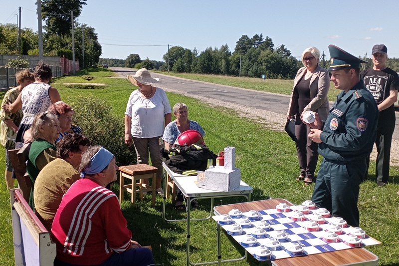 В беседе с пожилыми гражданами представители МЧС обсудили правила эксплуатации печного отопления и электрооборудования, необходимость установки автономных пожарных извещателей и порядок их обслуживания, повторили принцип работы огнетушителя и алгоритм действий, если заблудились в лесу. Особое внимание работники МЧС уделили подготовке к отопительному сезону. Сельчане были не против сыграть в «безопасные шашки».