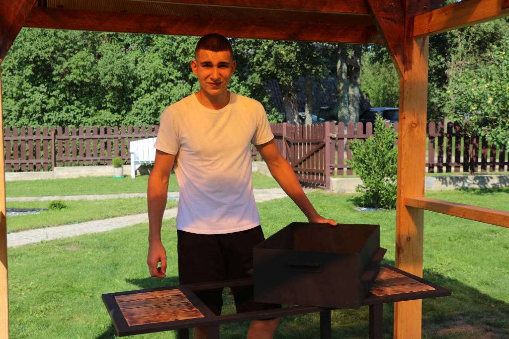 Сначала молодой человек занимался электродуговой сваркой, а вот уже полгода, как у него появился сварочный полуавтомат, который он приобрел за свои деньги. Работать со сваркой у Димы получилось сразу, первый сделанный им сварочный шов привел в изумление взрослых, таким аккуратным он был. Какое-то время юноша пробовал свои силы в ковке металла, сам смастерил печь и горн, даже выковал два ножа, но в этом направлении дальше дело не пошло. В планах — деревообработка, покупка электрорубанка и фрезера.