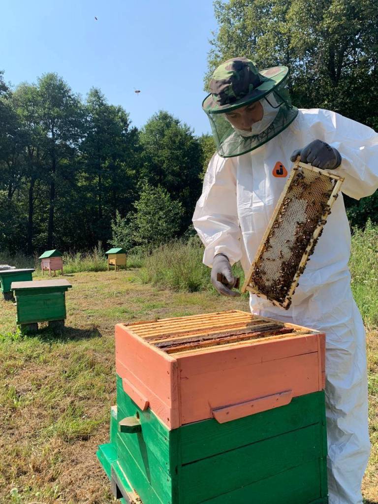 Этой зимой построил домики и рамки для полосатых медоносов, для близкого общения с ними купил специальную одежду, весной наблюдал за дикими пчелами и выследил рой на большой липе неподалеку от дома. По рекомендациям в интернете сделал ловушку для насекомых, несколько часов провел на дереве, пока не собрал весь рой. Сегодня за домом Красновских стоит семь домиков, в которых живут пять пчелиных семей. Еще четыре пчелиные семьи юноша на протяжении нескольких недель выслеживал и собирал в лесу.