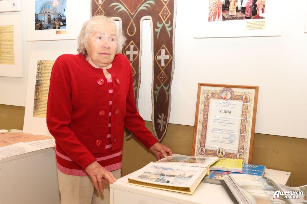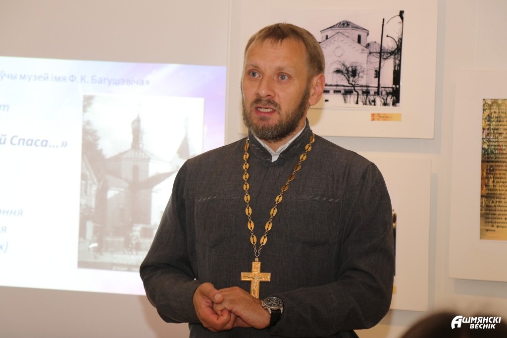 К значимой для нашего города дате сотрудники Ошмянского краеведческого музея имени Ф. Богушевича подготовили выставку «Под святой опекой Спаса…». В день ее открытия в музей были приглашены настоятель храма Воскресения Христова протоиерей Георгий Муха, старшая сестра Сестричества во имя святой великомученицы Варвары Екатерина Викторович, методист по музеям и историко-культурному наследию районного центра культуры Сергей Жилик, краеведы и друзья музея Тамара Филиппович и Валентина Лабунина, посетители дневного отделения для граждан пожилого возраста ТЦСОН, прихожане храма.